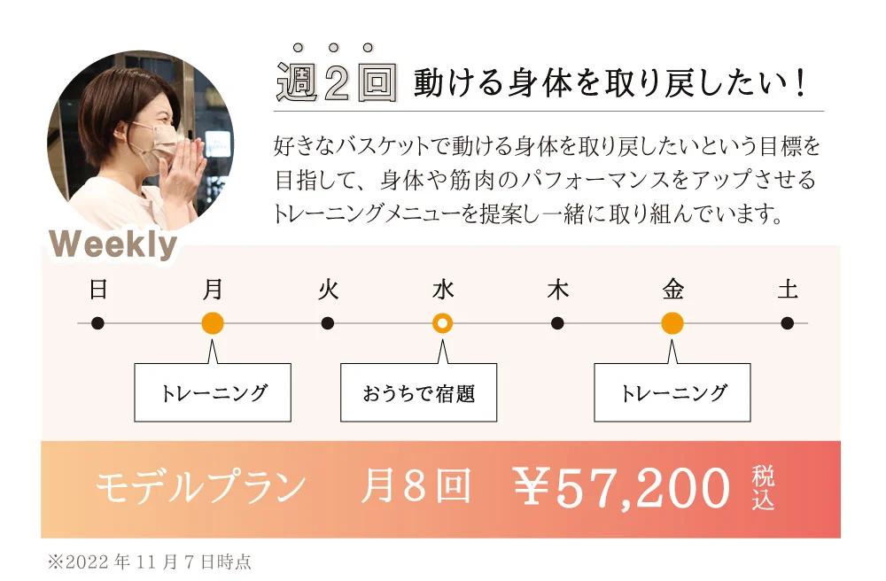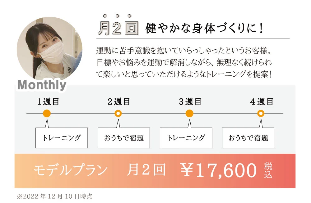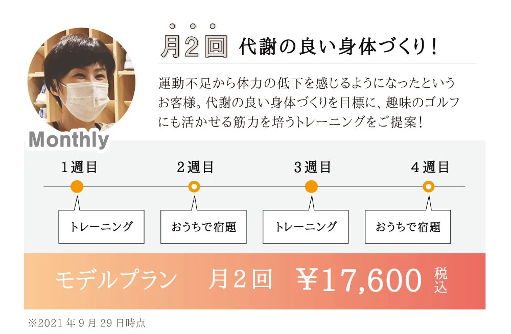 その日の体調に合わせて毎回メニューを組み立てます。ベストコンディションでなくても大丈夫!