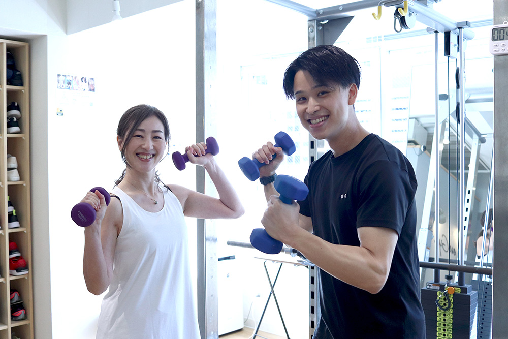ただ筋肉をつけたいと思っても自分では何をしたら良いか、どんなトレーニングが適しているのか判断するのが難しくて、プロの方にトレーニングを教えてもらえる場所を探しているうちに、パーソナルジムという選択肢に行きつきました。パーソナルはマンツーマンで教えてもらえるイメージがあったので、タヒチアンダンスでどんな動作を行いたいと相談すれば、それにあったトレーニングを提案してもらえるだろうなという期待がありました。