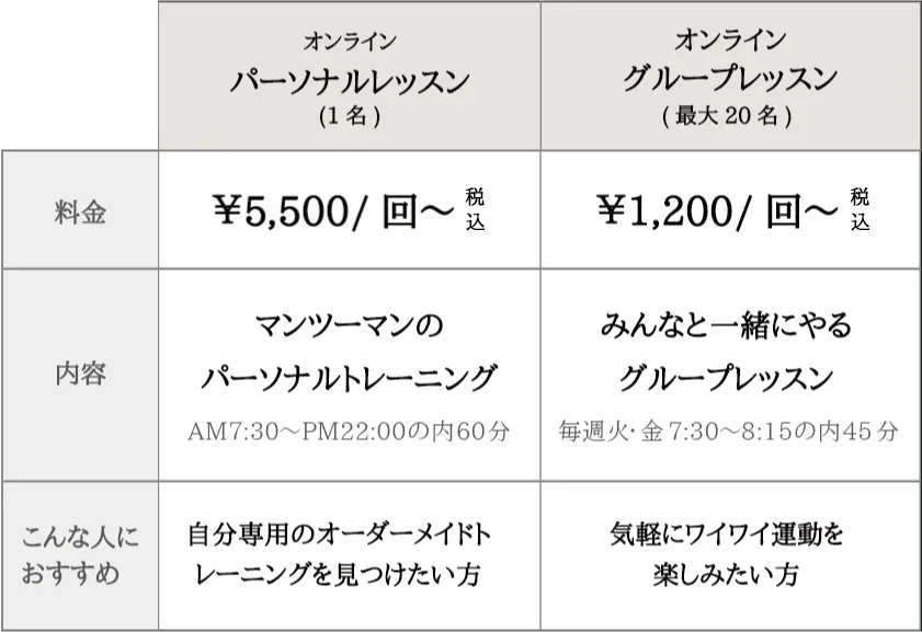 オンライン通話サービスZOOMを使用して、トレーニングを体験していただけます。スマホ・もしくはパソコンがあればOK!自宅で思い切り身体を動かしてみませんか?