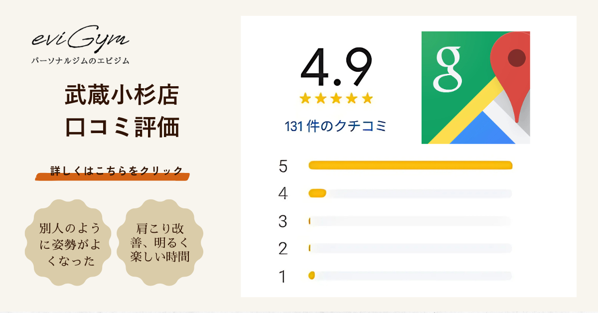グランツリー武蔵小杉2階にあるeviGymは無理なく楽しく運動習慣が身につくパーソナルジムです。ダイエットも得意としているので、是非お試しください。