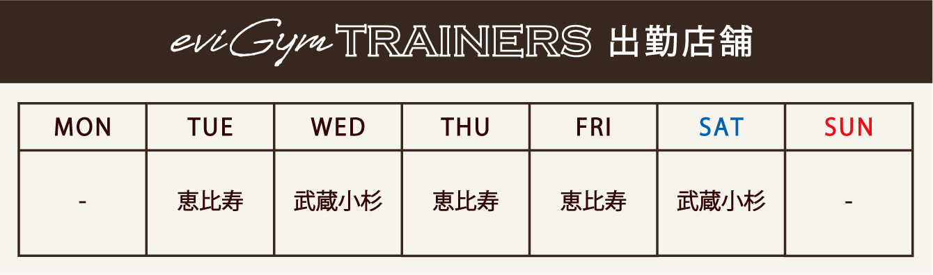トレーナーとして大切にしていることは、お客様の可能性を引き出し成功体験を積み重ねていくことです。エビジムのお客様の中には運動初心者の方や運動が苦手な方もいらっしゃいます。そういった方々が運動を好きになり継続するきっかけとなるよう、「私にもできる」ということを体感していただきたいと思っています。お客様の身体の状態や運動経験を踏まえたうえで、一人一人にあったトレーニングメニューを提供するようにしています。